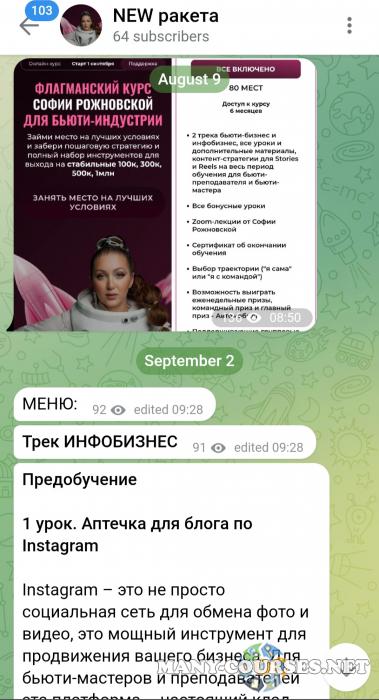 Вы находитесь на странице товара «София Рожновская - Beauty-рaкета. Сентябрь 2024», это материал 2024 года, который, мы надеемся, принесет вам пользу. Данный курс расположен на платформе «Канал Telegram».Скриншоты с платформы на которой расположены материалы вы можете найти выше. В нашем магазине курсы доступны по самым выгодным ценам. Вы можете перейти на оригинальный продажник, после чего принять решение о покупке. Если бы вы покупали у самого автора, то данный курс вам обошелся 109990 рублей. Вы получаете этот курс, купив в нашем магазине MANY-COURSES.NET, с огромной скидкой, всего 2490 рублей. Обучающий курс входит в рубрику «Бизнес, менеджмент, продажи», вы можете поискать другие сливы курсов в этой рубрике. В нашем магазине Вы найдёте ещё много курсов от автора «София Poжновская», достаточно ввести в поиск имя автора.