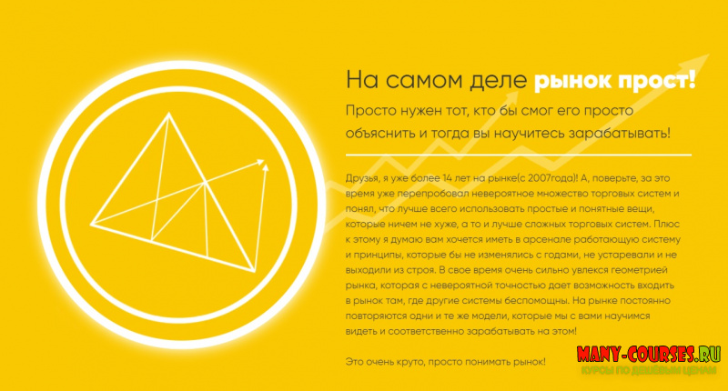 Друзья, я уже более 14 лет на рынке(с 2007года)! А, поверьте, за это время уже перепробовал невероятное множество торговых систем и понял, что лучше всего использовать простые и понятные вещи, которые ничем не хуже, а то и лучше сложных торговых систем. Плюс к этому я думаю вам хочется иметь в арсенале работающую систему и принципы, которые бы не изменялись с годами, не устаревали и не выходили из строя. В свое время очень сильно увлекся геометрией рынка, которая с невероятной точностью дает возможность входить в рынок там, где другие системы беспомощны. На рынке постоянно повторяются одни и те же модели, которые мы с вами научимся видеть и соответственно зарабатывать на этом!
